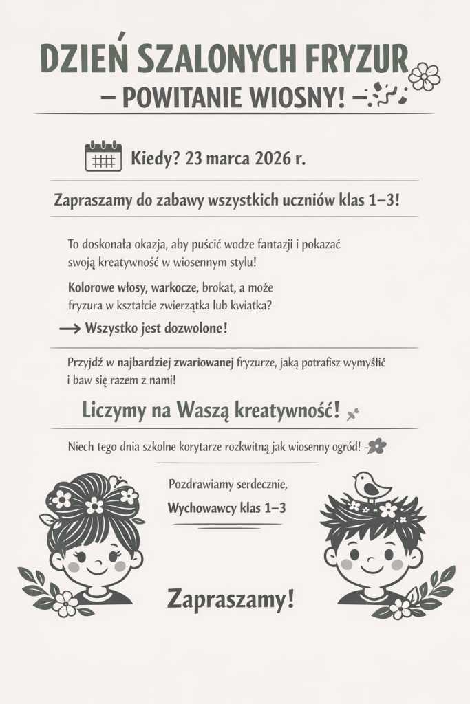 Home Aktualności DZIEŃ SZALONYCH FRYZUR – POWITANIE WIOSNY 🎉🌸